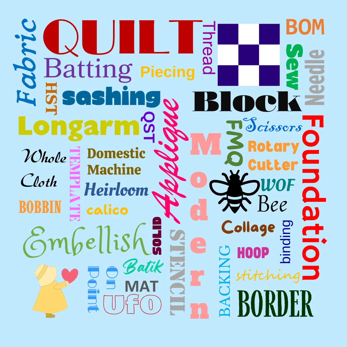Join us for a playful stitch-along where quilting terms become the quilt itself.